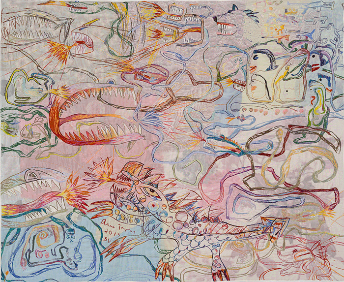Anna Torma «Snakes» (2013 ) technique mixte sur soie (106cm x 129cm)
