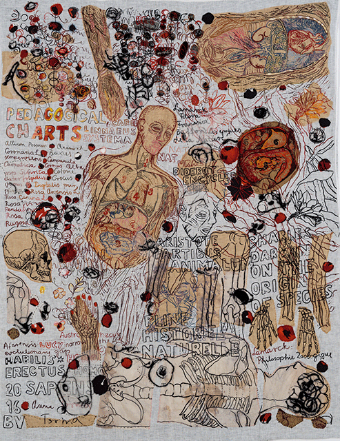 Anna Torma «Pedagogical Charts #1» (2016) technique mixte sur soie (180cm x 135cm)