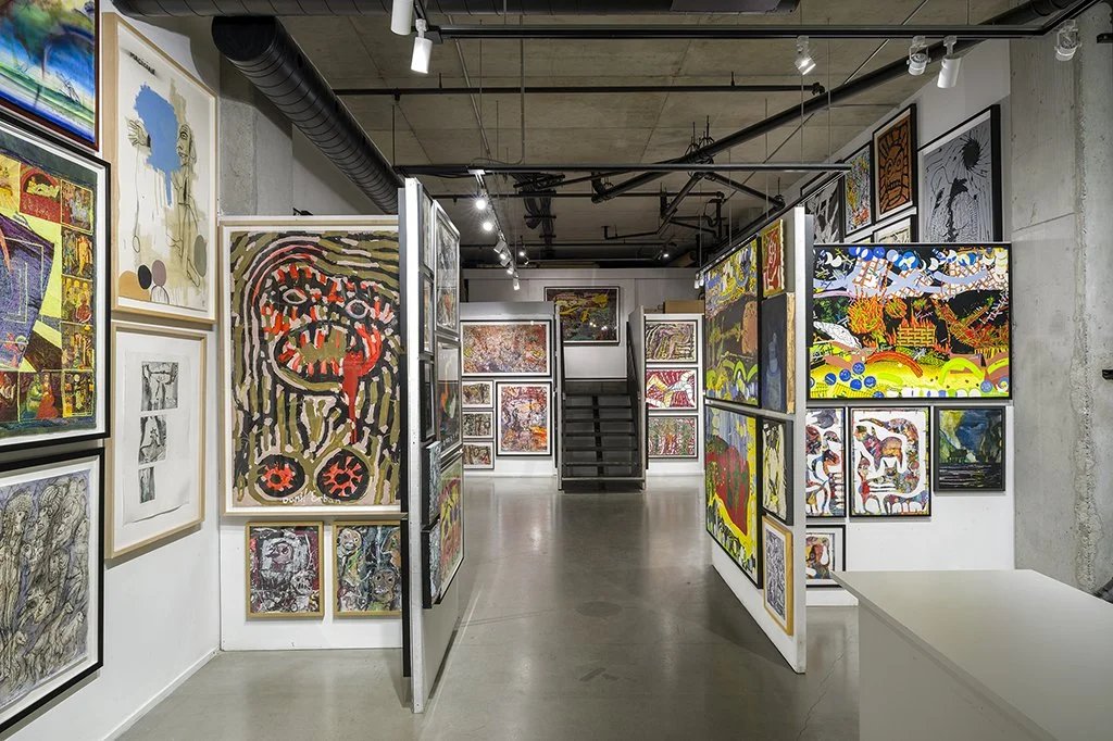 The collection of the gallery features drawings and paintings, mostly affiliated with art brut and underground art, comics and the world of Lowbrow .